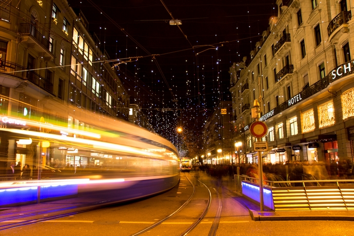 Bahnhofstrasse is Zurich’s main downtown street and one of the world’s most expensive and exclusive shopping avenues. The avenue is lined with trees and filled with fashion designer boutiques as well as Swiss watches and Jewelry.